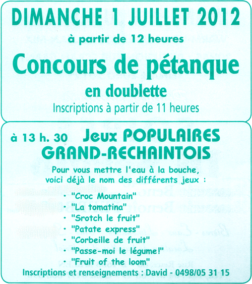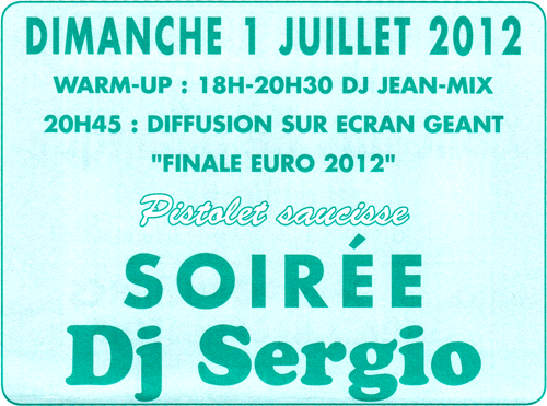 Pétanque, jeux populaires, finale euro, Soirée Dj Sergio – Dimanche 1er juillet 2012 par David · Publié 5 juin 2012 · Mis à jour 1 octobre 2016